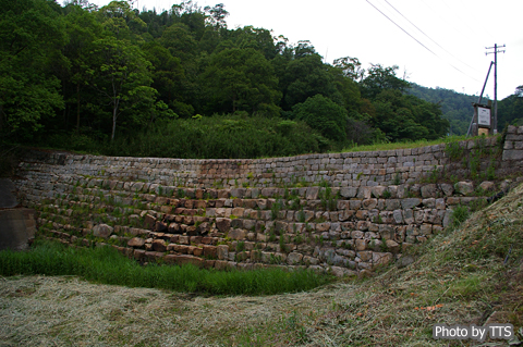 一見して、積み方の異なる上下層に分かれていることがわかる。下層の大きな割石の部分が 1832(天保3)年からの築造で、上層の小さめな割石でより緻密な積み方になっている部分が明治以降の嵩上げ箇所である。