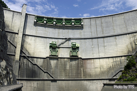 そのため堤体部分には放水用施設がなくて、のっぺりとした印象を与える。その分、3次元曲線の美しさを思う存分堪能できる。