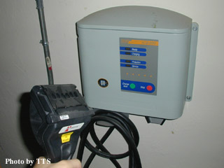 ![]() 写真に写っているのは普通のガソリン自動車。 | ロサンゼルスのダウンタウンの駐車場の入り口に、ちょっと代わった看板が掲げてあった。"Electric Vehicle Charging Station" つまり電気自動車の給電所である。