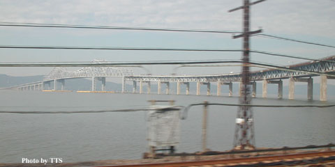 ところで、このタッパン・ジー橋を地図で眺めていると、ハドソン川の川幅が広くなる場所にわざわざ長い橋を架けていることに気が付くのではないだろうか。地図のYonkers付近と比べて、タッパン・ジー橋の架かっている場所は3倍くらいの川幅がある。この地域にはかつてDobbs Ferryのところにハドソン川を渡る渡船があったのだが、タッパン・ジー橋は旧渡河地点よりも離れている上に、Dobbs Ferryよりもさらに川幅が広くなっている。